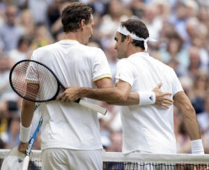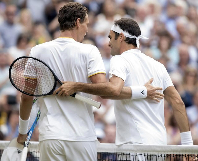 Roger Federer (SUI) and Tomas Berdych (CZE) at the net after their