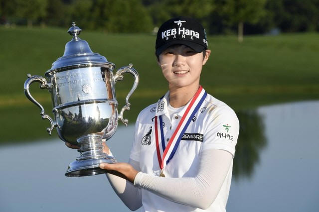 Sung Hyun Park poses with the U.S. Women's Open Championship trophy