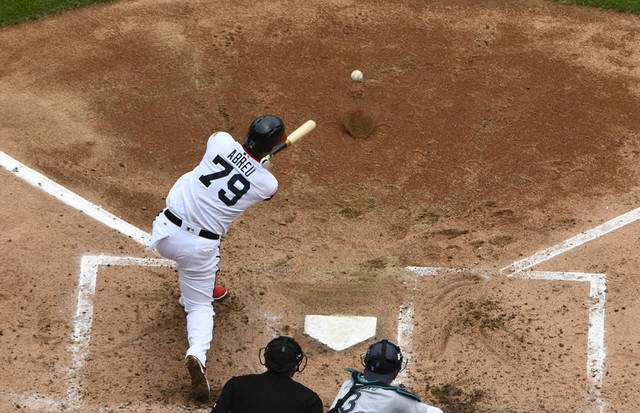 White Sox first baseman Jose Abreu (79) singles against the Seattle
