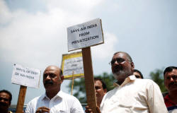 protest against the proposed privatisation of Air India by the