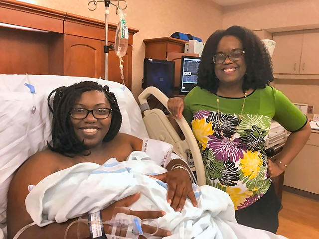 Dr. Nicole Arthur (R), visits Tariyana Wiggins, a high school