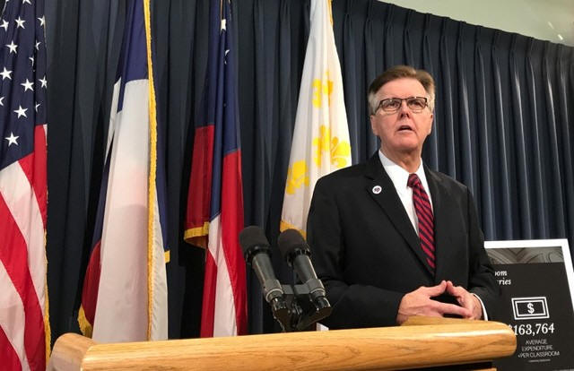 Republican Texas Lieutenant Governor Dan Patrick speaks at a news