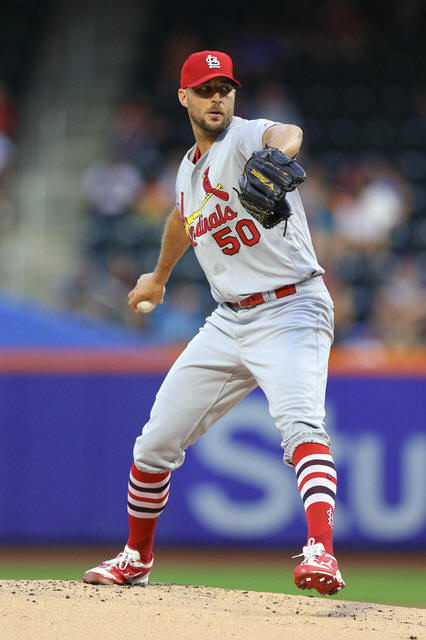 Cardinals starting pitcher Adam Wainwright (50) pitches against the