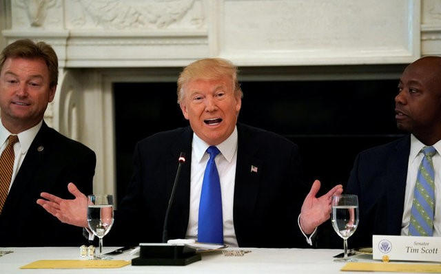 U.S. President Donald Trump meets with Senate Republicans to