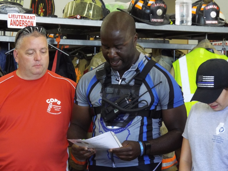 The group spent Friday night in Normal, then rode to Romeoville on Saturday. On Sunday they made stops at Burr Ridge where they remembered Fire Chief Edward Switalski, in Oak Brook where they remembered Public Safety Officer Michael Ventura of Wisconsin, and finally they would end their trip in Maywood where they remembered Patrol Officer Jason Gallero.