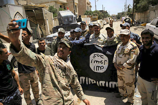 with an Islamic State flag, claimed after fighting with Islamic