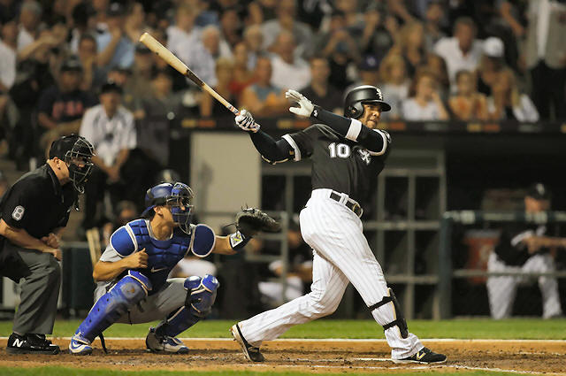 run go foul against the Los Angeles Dodgers at Guaranteed Rate