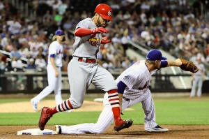 the tag during the fifth inning at Citi Field. Mandatory Credit: