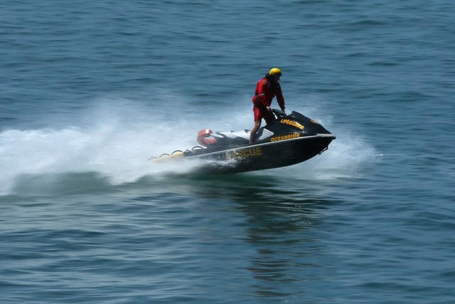 patrols the ocean off the beach in Oceanside, California.