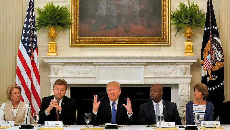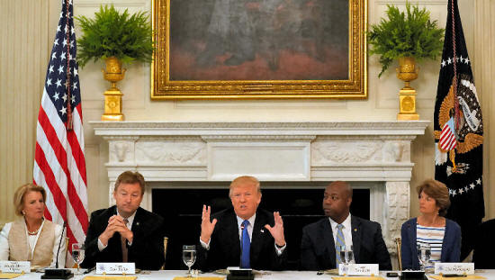Donald Trump speaks during a lunch meeting with Senate