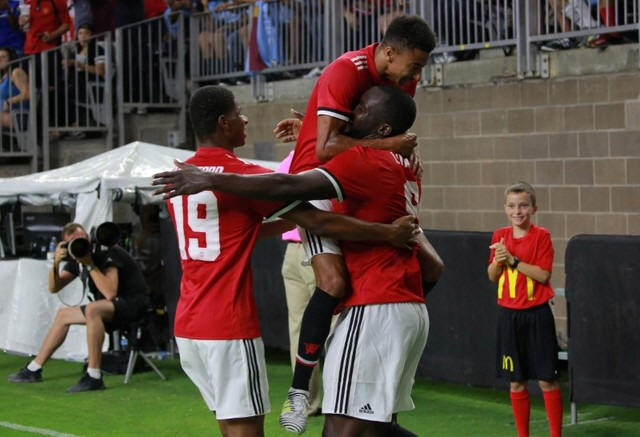 Manchester United's Romelu Lukaku celebrates scoring their first