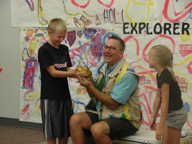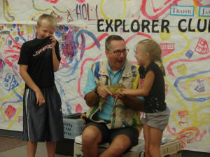 The ugliest specimen in the Silly Safaris bag of animals was a huge bullfrog from Africa named Bubba. Amazon John had two volunteers come up to join him on stage. Each got to hold the giant frog that hides in a pond and waits for prey to come to it. Neither volunteer wanted to kiss the frog to see if it would turn into a prince.