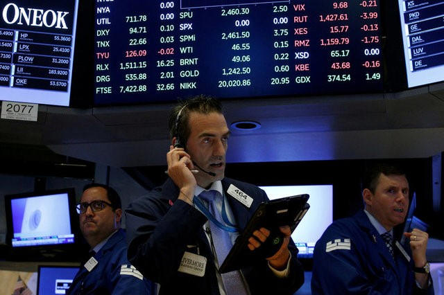 Traders work on the floor of the New York Stock Exchange (NYSE) in