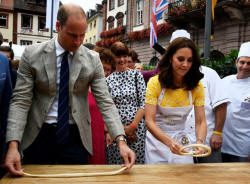 and Catherine took a lesson in pretzel-making from apprentices