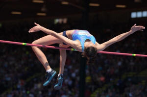 Maria Lasitskene (ANA) wins the women's high jump in a meet-record