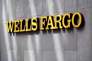 The sign outside the Wells Fargo & Co. bank in downtown Denver April