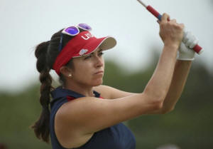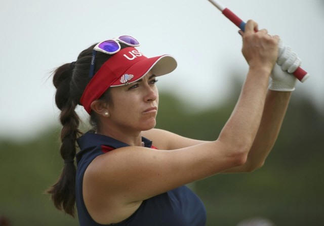 Gerina Piller (USA) of the United States watches her tee shot on the