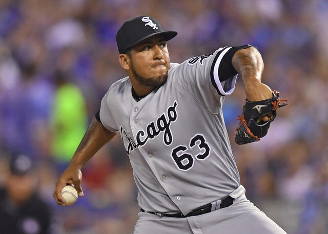 White Sox pitcher Gregory Infante (63) delivers a pitch against the