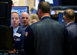 Traders work on the floor of the New York Stock Exchange (NYSE) in