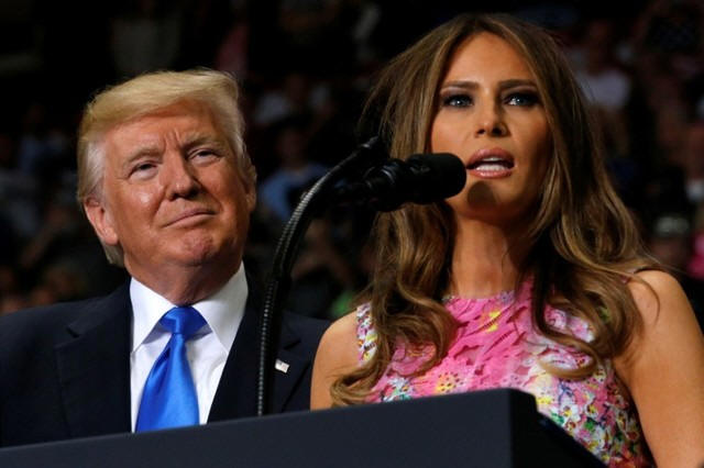 President Donald Trump (L) is introduced by first lady Melania at a