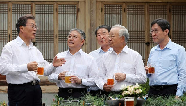Korean President Moon Jae-in played host to corporate tycoons for the