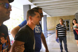 police officers to a court in Thessaloniki, Greece July 26, 2017.