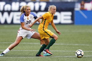 outstanding Matildas goalkeeper Lydia Williams parried it away