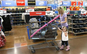 A woman shops with her daughter at a Walmart Supercenter in Rogers,