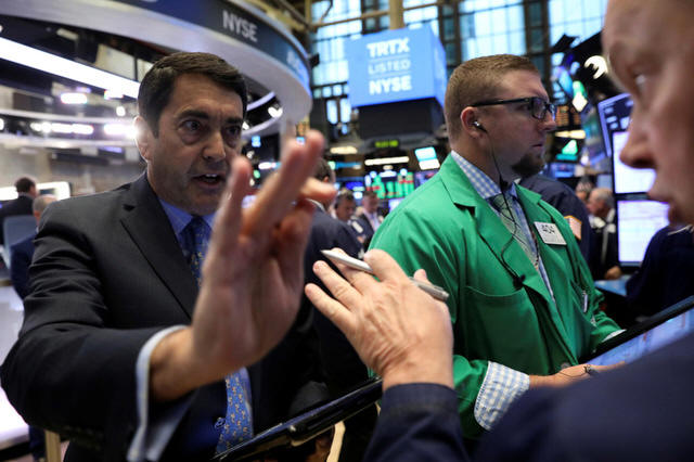 Traders work on