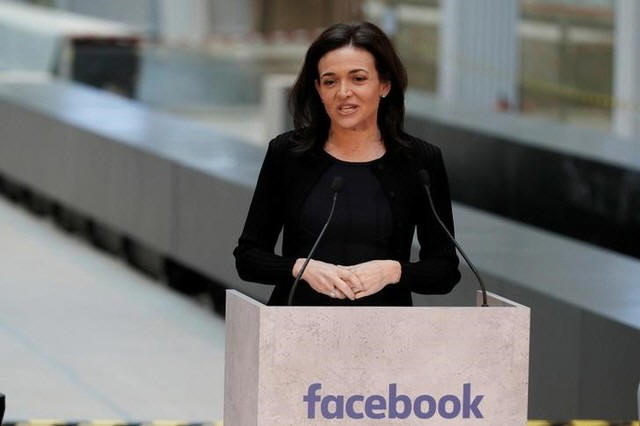 Chief Operating Officer of Facebook, delivers a speech during a