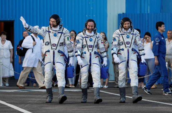 Paolo Nespoli of Italy, Sergey Ryazanskiy of Russia and