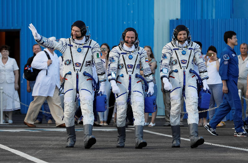 suits, shortly before their launch at the Baikonur