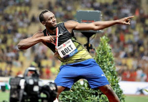 Jamaican sprinter Usain Bolt reacts. REUTERS/Eric Gaillard
