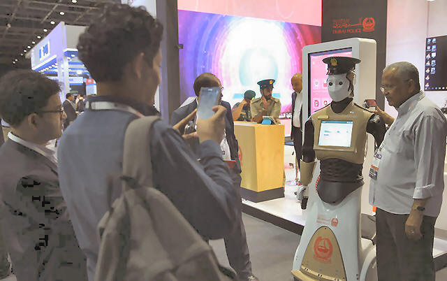 Clad in the colors of the Dubai Police uniform, the life-size robot,