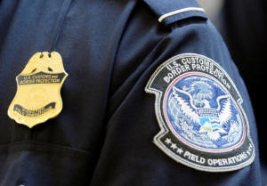 A U.S. Customs and Border Protection arm patch and badge is seen at