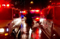 at the entrance of a hotel after a shooting incident inside