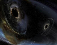 An artist's rendering showing two merging black holes similar to