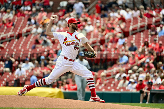 starting pitcher Adam Wainwright (50) pitches during the