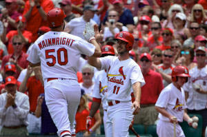 second baseman Paul DeJong (11) after hitting a two run home run off