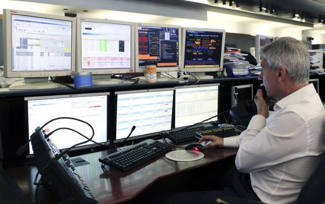 A trader looks at his screens on the Unicredit Bank trading floor in