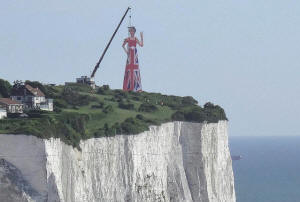 cliffs of Dover on Monday, complete with a Union Flag skirt and a rude