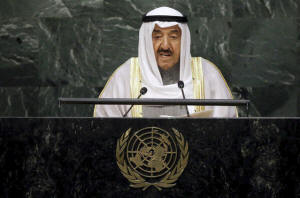Kuwait's Emir Sheikh Sabah Al-Ahmad Al-Jaber Al-Sabah addresses a