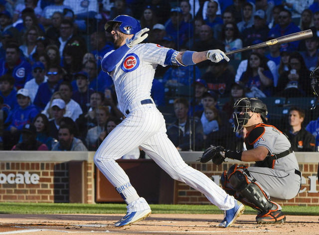 Cubs third baseman Kris Bryant (17) hits a two run home run during