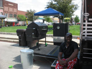 For Blowin' Smoque BBQ of Crete, Illinois it was their first time competing here. Team members Erica Taylor, Brian Taylor, and Emmanuel Pugh have competed at Mount Carmel and won third in chicken and second overall at Ribberfest. Erica Taylor said, "All the rubs and spices" make the meat special.