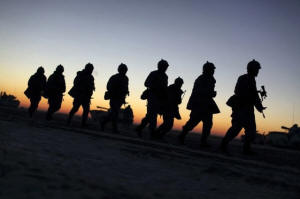 Soldiers of the People's Liberation Army (PLA) Marine Corps march