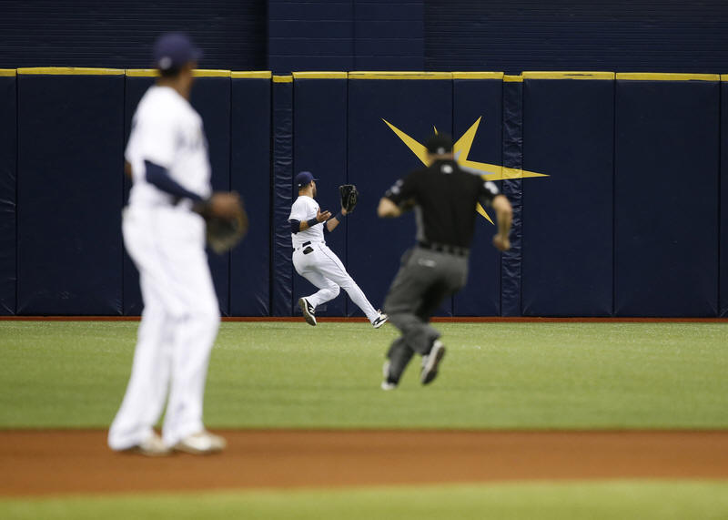 Bay Rays center fielder Kevin Kiermaier (39) misses a