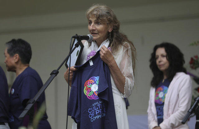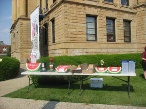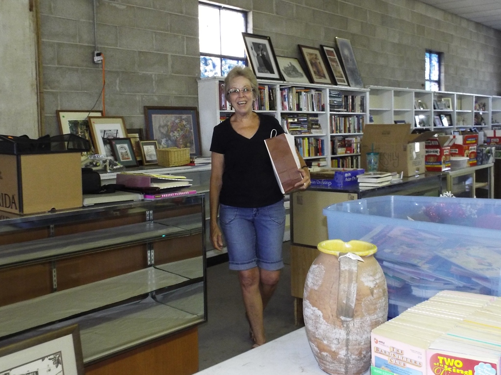 Judy Conzo, Humane Society of Logan County volunteer and co-organizer with Marilyn Wheat of the annual HSLC Garage Sale, smiles happily as she works to get sale items organized for this weekend's fundraiser event. The garage sale rakes in several dollars each year, which in turn serve to support the HSLC shelter and the animals that are temporarily living there awaiting adoption. The preview sale is tonight, and then the sale will continue on Friday, Saturday and Sunday at the Logan County Fairgrounds.