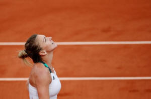 Romania's Simona Halep celebrates winning her semi final match