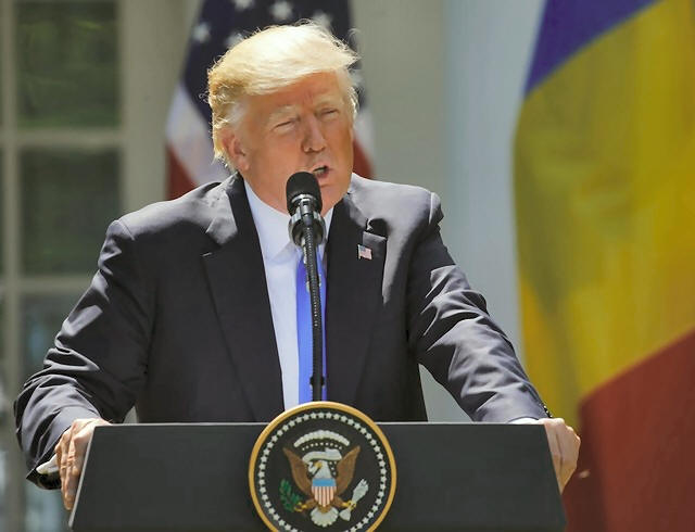 At a joint news conference with Romanian President Klaus Iohannis, Trump