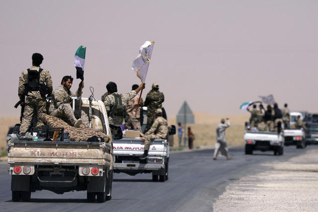 Syrian Democratic Forces fighters on their way to Raqqa.